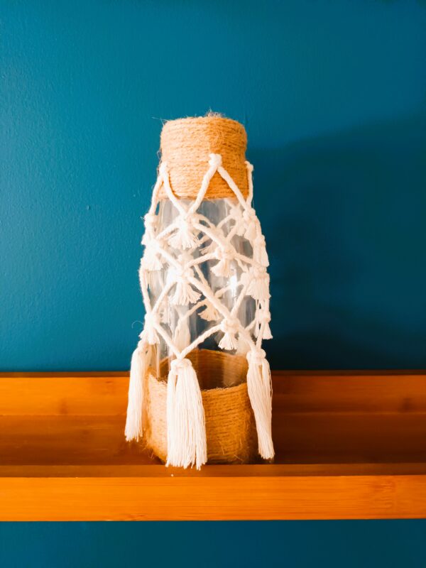 pot en verre recyclé (♻️ upcycling) , corde de coton et jute naturelle